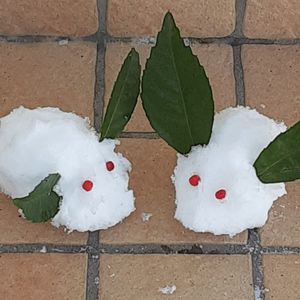 雪うさぎ🐰目と耳は南天です 雪降っちゃいました☃️ 初雪❄️