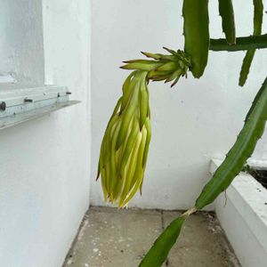 やっとやっとひとつだけドラゴンフルーツができてきました。去年から栽培してたけどなかなかフルーツが実らない。 っで水もかけずにほったらかしてたらやっと出来ました。栽培方法をちゃんと勉強しないとですね〜!!