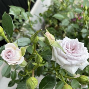 こんばんは〜🌃♬ シロバナシラン・エバーグリーン🌿🤍🌿 🌱小さな芽が やっと適した場所で増えて7本になりました♡ ⓶薔薇カフェ・オ・レも 去年は小さなお花でしたが 春先に思いきって剪定して 元気な大きなお花をつけました💓