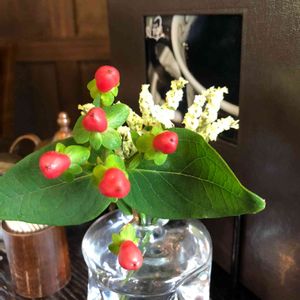 お盆の前に お墓掃除に… いつも立ち寄るランチのお店 移転して新しくなってました🤗 テーブルにヒベリカムと? 暑い中店内に入って ホッと一息できました😇