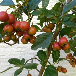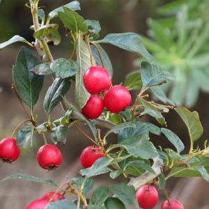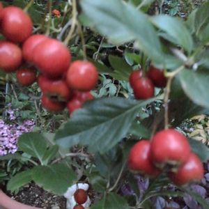 大きなルビーサンザシの実がたくさん実りました❣️ コレステロール値を正常にしてくれ、美容にも良い実 薬草の山査子の園芸品種で、見応えもあります‼️