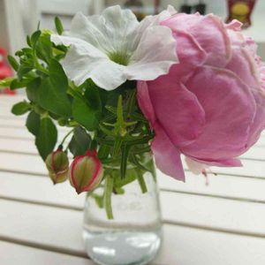 切戻したお花ちゃん達の、ミニミニブーケ🌸🏵 ペチュニア、フクシア、アイビー、バラ(スイートホーム)🌸🏵🌼