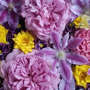 おはようございます☀ 今日のハイビスカス🌺 とデュランタ💜 サンパラソル♡ ミニ薔薇🌹 ゼブリナ🌿 散ってしまう前に 浮かせてみました😉💓 デュランタてんこ盛り😄💕