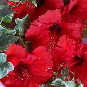 こんにちは~☀ 毎日暑いですね この夏初めて日中エアコン 付けました(;´Д`)´д`)😰💦 部屋は涼しいですが ベランダ暑さ急上昇💦 お花さん達ご免なさいです💦 1日花のハイビスカス🌺さん 最初の頃より少し小さめ💦 明日は萎んでしまうので 今日咲いたお花で🌺/★*☆♪♡~