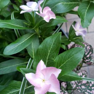 気温で色変わりする日々草🌸🌿 ピンク色で咲いています💕 (*´艸`*)🎶 6月中旬に寄せた頃は、青みがかる爽やかな紫で咲いていました ラベルに、気温で変化する花色と書いてあったとおり、7月の猛暑から可愛いピンク色で咲いています😳