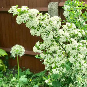 白いアリウム。品種は何だったかな。 我が家の庭のアリウム、どの種類も今年はイマイチ不良でした。今年は新しい球根増やそうかな。