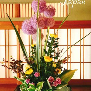 アリウムを主枝にした 伝統的なスタイルの生け花 見せていただきました。 こんなん見たら やっぱり落ち着くわ〜💕 徳島市 渭水苑 お玄関にて