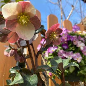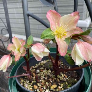 🍀クリスマスローズ マエストロ🍀 ある画廊の入り口にあったクリスマスローズ❣️ さすが、画廊でしょうか‼️ なんとも言えない色合いに魅入って しまいます💕 調べると、、、 マエストロは、ニゲルとリビダスの2種類の原種を 交配した異種間交配種。 ピンクフロストとの兄弟の種間交配種です。 中輪の花がたっぷりと味わえる品種です。 クリームやダークピンクが重なり合う 複雑なお色です。