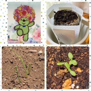 花のあるおうち時間 5月19日にタネを蒔いて・・・🤗 ⬆️コーヒーバッグのタイム。 これがあのマイケルジャクソンのゼログラビティ⁉️🤔 本家は元に戻るけど、こちらは戻りませーん🤣🤣🤣 ↙️アスターらしき芽が出てきました😊 ↘️味十八番ネギの芽も。これは分かり易い芽🌱ですね。いかにもネギ🤣 今の所順調です😊