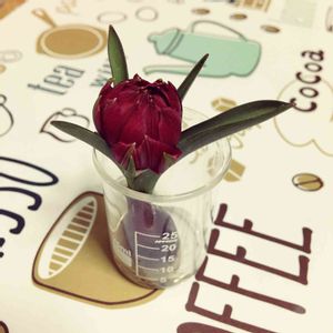 ちっちゃなチューリップを、ビーカーで水耕栽培。