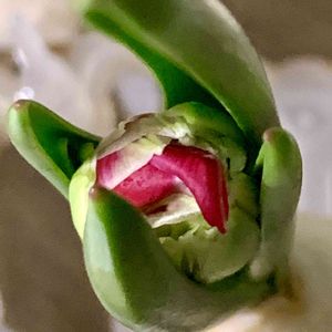 それはおっさんもズキュンとなる美しさ😍 咲いてきた( ´ ▽ ` ) 蕾がプクプク大きくなる姿は可愛かったけれども、花が咲くと一転❗️それは優雅な姿に😊