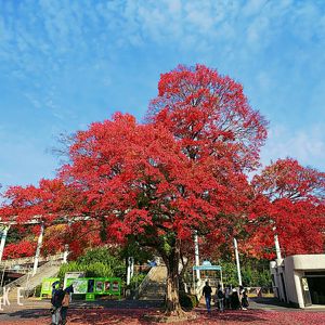 下にも真っ赤な葉がいっぱい🍁❤️☀️ 遠足の児童たちが🙌と巻き上げていました❤️ 青空との対比も素晴らしく暖かな日で大きな📷️を抱えた方も 三脚持参の方もたくさん💡 しばらくよい天気が、続く名古屋です🎵