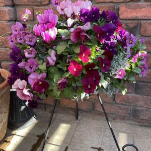 ♡パンジーハンギング♡今日のお花No.1 一昨年末に作成したスリットバスケット! パンジーの他にアリッサム、ガーデンシクラメンを植えましたが冬越しし〜 昨年春にはパンジーだけモリモリになってました🤭 ❶昨年春のパンジー ❷一昨年末の寄せ植え ❸昨年春の玄関前のパンジー ❹カマッシア ❺シラーシベリカ