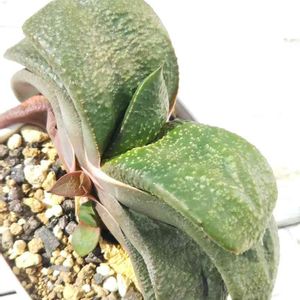 ガステリア 臥牛 多肉植物の本で初めて こいつの存在を知ってから、いつかお迎えをしたい!と恋い焦がれていました しかし、欲しいと思っても中々出会えないのが地方の悲しい所 ちっちゃっ‼️ とか、 ばり高け~し‼️‼️みたいなのは たまにあるんですけどね...💦 でもね、昨年の秋に ついに出会えたんです しかもワンコイン👌 ...素敵💕 無事に冬を越えて、子株も2つ出て来ました🎵 1つは既に焦げ気味ですが、気にしな~い😁 ふぁぁ(///ω///)♪ このゴリゴリマッチョ系のボディがたまらんわ~💕