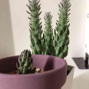 ① 普通に元気な時。その後凄く伸びますが、写真が見つからず。 ② 越冬して、春が中々暖かくならなくて、根腐れ起こし、胴切りを2、3回。発根せず、ただ土に挿している状態。 ③ たくさん子株が出てきて、根もはり出す。あっという間に別人に、生体が安定したって事かな。小さいのに結構な暴れん坊に。 縦7センチ×横5センチ ①、②は日本海側で暮らしていた時です。③は7月に太平洋側へ引っ越して、この1ヶ月ちょっとでこうなりました😆。 寒い冬を経験したからなんですかね、毎日子株っぽいのが増えてる気がします。 これから大きくなったら、立派で痛い棘が生えてきますよねっ。
