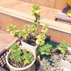 子持ち蓮華は元気でひと安心(*´∀`*) でも買った時から間延びしたまま^^;