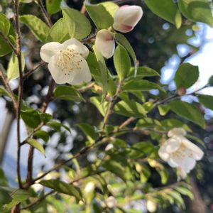 おはよう☀長〜い時間をかけて、やっと咲き揃いだしました🎶数年前の植木祭りでのプレゼント品です。別名「香り椿」らしいですが、、、香ってるかな???小さな花がとても可愛らしいです(^^)