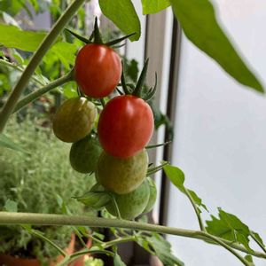 ミニトマトが赤くなり始めました🍅 息子がいつ食べる?とひっきりなしに聞いてきて💦 今年も完熟トマトは食べられないんだろうな😅