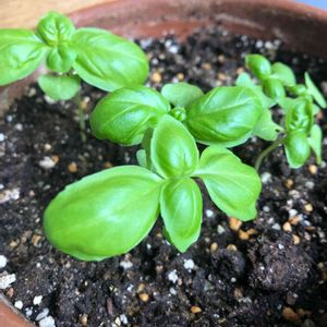 種まきバジルが、バジルっぽくなってきました😊 ちっちゃいのに香りはしっかりバジルです🪴 種まきが遅かったから、収穫はまだまだ先のようです💦