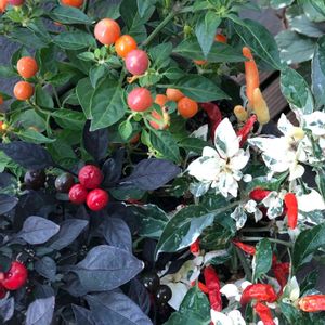 ベランダの暑さでいくつかお花がダメになり😢 もう秋までお花はお迎えしないつもりだったけど、かわいいトウガラシに出会ってしまいました😊 長男、次男、私がそれぞれ選んだトウガラシ3種を一鉢に🪴