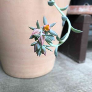エケベリアに、いつの間にかお花が咲いていました✨ お花を咲かせると株が弱るのでしょうか? エレガントな姿なので、花を切ることができません💦