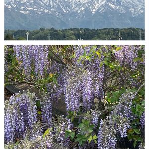 こんにちは♪ なんだか曇り空。 我が家の2階ベランダに植えてある藤の花を見たくて、久しぶりに屋上に登りました。 蜂が🐝くるので、何年も前に切ったのだけど、また元気に屋上まで成長してしまいました😆 写真は、屋上から見た藤の花です。 見下ろしてる感が変ですけど。 もう数年したら、屋上のフェンスに這うでしょう! 屋上から、立山連峰も見えます。 写ってる山は、僧ヶ岳です。