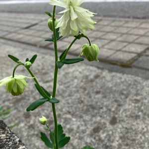うちの玄関前のセメントの隙間 可愛いオダマキさんが開花です♪ 不思議な事に、隣のお家に咲いているオダマキの種が道路のアスファルトから転がり、セメントの隙間に落ちたのかな? と思われます。 白い可愛らしいオダマキさんが、我が家の子になりました🙌 うふふ🤭