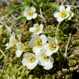 南アルプスの北岳〜間ノ岳の花 チョウノスケソウ(バラ科) 発見者須川長之助氏を記念してついた。高山の砂礫地に生える常緑の草状小低木。葉は楕円形で先がまるい。羽状のギザギザがある。 チョウノスケソウの花後を2年前に見て、今回、花を見ることができて感激しました🥰 3枚目 イワカガミ 4枚目 キバナシャクナゲ 高山帯のハイマツ林ややや湿った岩石地に生える常緑小低木。高さ20〜50cm。黄色の花を横向きにつける。 5枚目 イワウメ 花がウメに似て、高山の岩場に生える。カーペット状に群生する常緑の低小木。葉はヘラ状で先がへこむ。