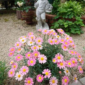 おはようございます😊☘️ PWマーガレット ストロベリーホイップ🍒 pinkのマーガレットが庭を 素敵にしてくれています 可愛いなぁ😊 自然と笑顔🤗に〜🎶 お花を眺めていたら気持ちもほっこり✨ 今日は雨の一日☔ 気を付けてお過ごし下さい