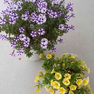 今日のスーパーチュニアスカイブループラスと手前はアフロディーテエレガフミナ。 あふれ咲き〜✨