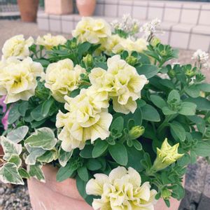 春の初め頃にお迎えした八重咲きペチュニア🌼 鉢からこぼれ落ちそう🌼こんもり🌼