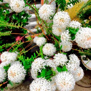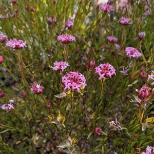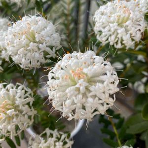 ■ピメレア フォーシーズンズ ・ジンチョウゲ科ピメレア属/オーストラリア、ニュージーランド原産 ⭐以下、園芸ネットHPより ピメレアはオーストラリア、ニュージーランド原産の常緑低木です。細かい葉を茂らせ、ブッシュ状の樹形となります。フォーシーズンは四季咲き性で、写真のようなピンクの小花を手まり状に咲かせます。開花後に枝が伸びすぎたら、早めに3分の1程度切り戻してください。6月頃にまた開花します。長く伸びた枝には、側枝からも花が咲きます。鉢植えや寄せ植えの材料としておすすめです。丈夫で育てやすく、0度までの低温に耐えます。鉢植えにして冬から春は室内で楽しみますが、暖地では地植えも可能です。 栽培方法: 日光を好み、暑さ寒さにも比較的強いので、関東以南では戸外の風通しのよい日当たりで年間を通して管理できます。水はけのよい土を好みます。過湿には弱いので注意してください。特に冬は水を控え気味にします。肥料は4月頃と9月頃の年2回。剪定は5~6月の時期に行います。冬は凍らせない程度に防寒します。刈り込みには強く、また自然樹形でも楽しめます。花後に剪定・植え替えをしてください。