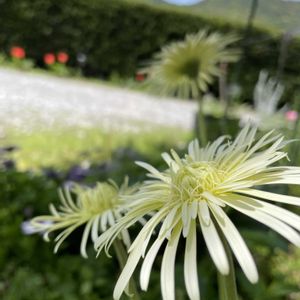 今日の庭…ガーベラ、フランスギク、バラ 🤍八重ガーベラ昨年実家から、貰ってきました やっと咲きました フランスギク、昨年宮崎旅行のお土産です♪ 🤍バラこれも、実家のバラを挿し木しました 庭…自然に任せて、今年は草花や雑草はそのままにしています どくだみは、✂️してますが〜🙏