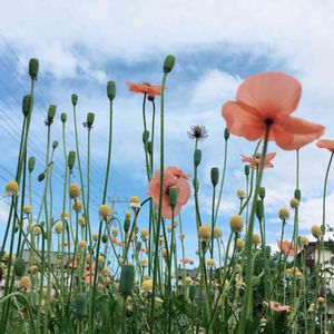 こんばんは☺️ 今日のお花♡ カモミール キク科 毎年…溢れ種で咲いてくれています〜ケシのお花と🎶 そよ風に揺れて〜💙🌼 2021.5picより…ちょっと花終わり気味で😅 今日も一日お疲れ様でした〜🌸🌿