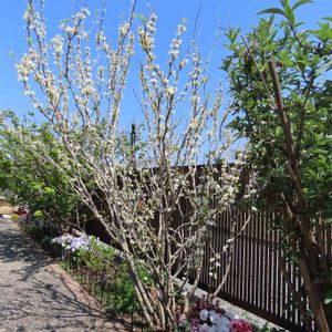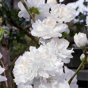 毎年、ソメイヨシノとほぼ同時に咲くハナモモさん。桃なんだからピンクがよかったと家族は言ったけど、白だってとってもきれいです。