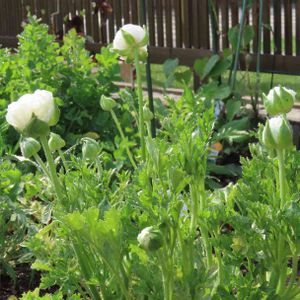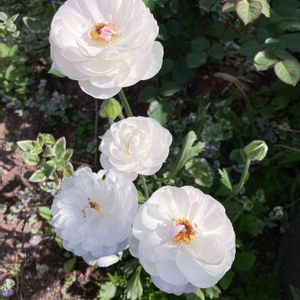 秋に球根を植えた 裏庭のラナンキュラスもたくさんの蕾♡ 3株あるのかな🌿 もうすぐ咲くねぇ☺️ 🏷やっぱり白花