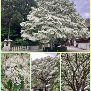 沙沙貴神社⛩️ なんじゃもんじゃの木が満開でした💖 どのpicも同じ木です アングル変えてパシャリ📸