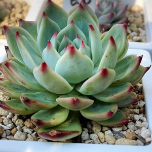 これって名前なんだったかなぁ。 買ってきてからずっとパープルっぽい色でパカーンって開いてて、綺麗じゃなかったのに、今朝見たらこんなに可愛くなってた💕😊 めちゃめちゃ嬉しい~♪ 多肉好きだとこれだけで気分良くなる〜