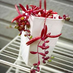 ルビーネックレス♡ 垂れてると可愛い〜 地植えのルビーちゃんはグリーン。 でも増える速度がとっても早いw この多肉ちゃんも強いから安心〜