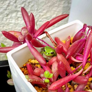 えっ、カエル🐸 気に入ったのかな🤣🤣🤣 この子、よく我が家の壁にいるんだよね。 あまりそこから動かないんだけど まさか多肉の中に入っちゃったとは😅 でも数時間後にはもういなかった笑笑