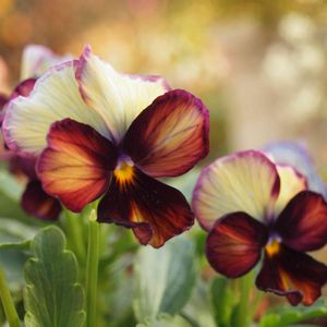 開いたばかりのビオラは、不自然なほど美しい色をしていました。