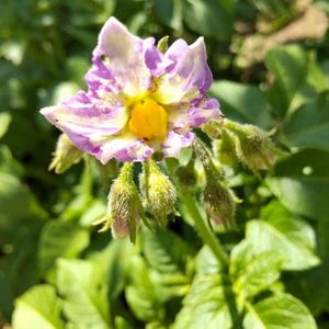 ゲゲゲ!今日は調べものして、たくさんの文章書いてたのに消えて一からだ:(T-T): 一昨日にじゃがいもの花の投稿したら、「私の知ってるじゃがいもの花は白」って白うさぎさんが言うので、調べて見ました! じゃがいもの種類で花の色が違う!? 初めて知りました! そして、じゃがいもの種類多いです! 今日の花は友達が、赤いじゃがいもを植えてみた!と言ってたので期待して画像送ってもらいました📱 「メークイン」紫に白絞り 「男爵」淡赤紫先は白 「とうや」「マチルダ」白 「キタアカリ」紫 「でじま」白 ちょっとなじみのある芋だけでも違いが! 調べると、ポテトチップスの材料になるじゃがいもは一年中作られていて、品種改良もされているようです! ボーッと見ていたじゃがいもの花の事、ちょっとわかったけど、奥が深すぎてゲゲゲ!