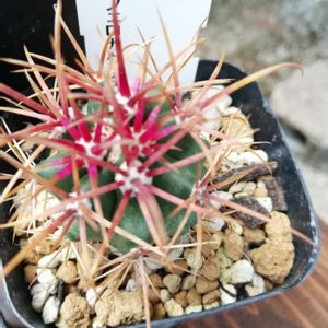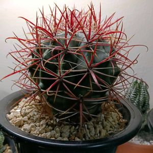 ほぼ1年後の姿シリーズ vol.255 フェロカクタス 赤刺金冠竜 上 21年6月 下 最近 体格が良くなったという印象。 トゲも( >ω<)ヾ(・ω・^ヾ)ワシャワシャ♡ 壁|ω•`๑) 。oO(赤刺っていう割には黄色がある)