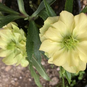 イエローのクリスマスローズ 鉢の中を見ると根っこがイマイチ 植え替えて 夏越し頑張ってもらわないと💪