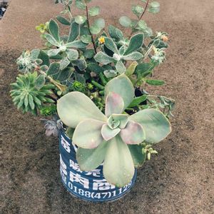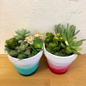 昨日久しぶりに塗り塗りした鉢に寄せ植えしてみました 雑いのがまるわかり💦 絶対服汚すので今度からはエプロン必須😆