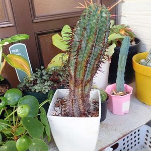 カッコイイ白肌が自慢のユーフォルビアホリダ。 我が家に来て緑色に変わってましたがなるべく陽に当て放ったらかし雨晒しにしたので白肌になりつつあります。 成長もゆっくりで大きさも程良い。 ご機嫌良く過ごせているみたいで嬉しいです♪