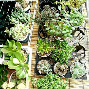 園芸店で多肉の商品の陳列に使われているトレー、鉢が固定されるので、重宝して使ってます そろそろまた棚作らないと、置けなくなってきた、きりがないな💦😖