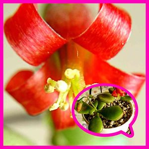 多肉。コチレドン属。ゴルビュー。別名、パピランス、花簪(はなかんざし) 今にも咲きそうな、状態で1ヶ月以上、やっと開きました、花の大きさはエケベリアと同じ位ですが、花びらが反り返るのが特徴ですね