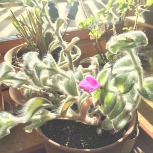 名前不明。 数年前に挿し穂でやってきて、 年中外管理。 特徴 ①冬に激減(多分寒さ)、春にまた増えこのような状態になります ②ホントは綺麗な緑 ③もけもけな葉っぱ toshiさんありがと~✨ 一瞬で名前が判明👍👍 さっすが~😆