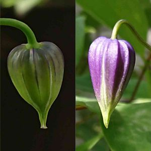 クレマチス 滴 開花しました! ちっちゃな壺形の可愛いクレマチス✨ 長さは2cm程。 守ってあげたいような小ささですが、意外と花弁は分厚く強いようです。💪(💜ˊ艸ˋ)♬*
